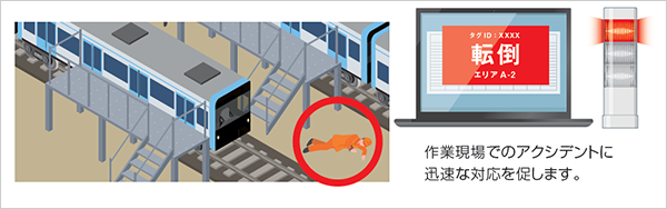 点検場や整備工場などの屋内で、作業員の位置・動線をリアルタイムで見える化。作業レイアウトの改善だけでなく、万が一の作業員の安全管理も実現。