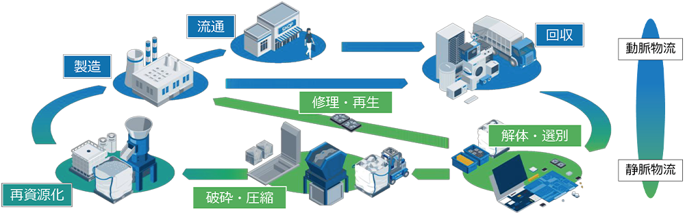 回収・処理・再生材生産まで一連の工程を可視化します。