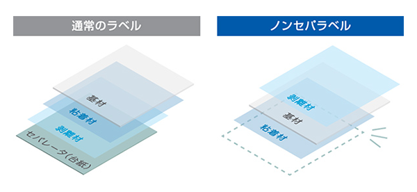 2025年6月に稼働を開始した関東DC(ディストリビューションセンター)では、従来のラベルと比較して木材の使用量や廃棄物の少ないノンセパラベルを採用しました。