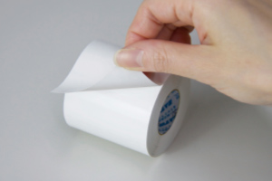 ライナーレスラベルは、ラベルの表面(基材)に剥離剤が塗布されており、セロハンテープやガムテープのようにそのまま使用できるのが特長です。