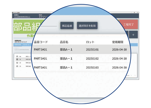 製造工程での部材情報や作業履歴、検査結果を記録・蓄積することで、品質管理や追跡性の向上に役立ちます。