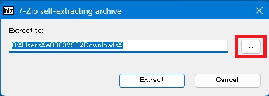 圧縮ファイル(7-Zip)が表示しますので、赤枠で囲んだ右側の【・・・】を選択。